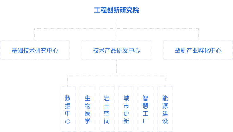 技術產品研發中心:在六個細分領域協助各部門從實際工作中挖掘有實用價值的創新點,綜合分析判斷有利方向后,加快推進該方向的試驗、專利、論文、專著、工法、標準等研發過程中的必要成果,并在試用過程中不斷糾錯、調整,螺旋上升,形成可用可靠的應用型科技產品。